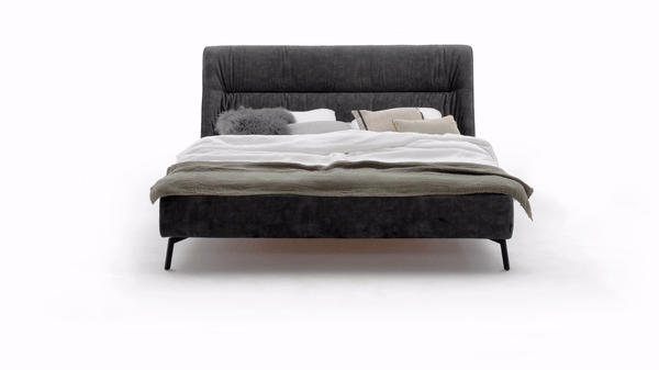 Runde Formen, freundliches Wesen: Das Polsterbett Contur® Alvito lädt nicht nur zum Schlafen und Kuscheln ein, sondern eignet sich auch hervorragend zum Anlehnen, denn sein Kopfteil ist einmalig komfortabel. Wellness im Schlaf – erholsam aufwachen gehört bei Contur® Alvito dazu.